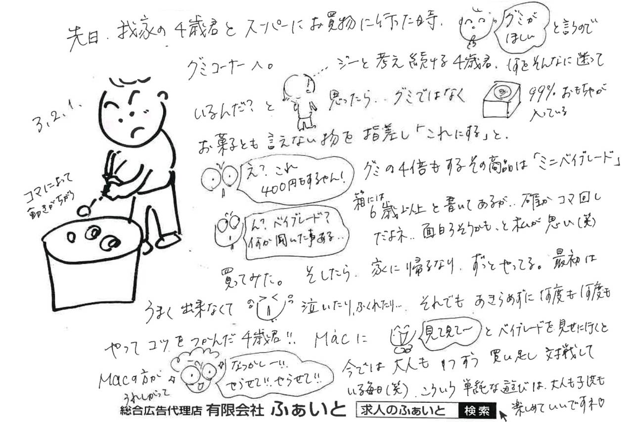 翌日、スタッフのmacに見てみて~とベイブレードをもって事務所にやってきた。